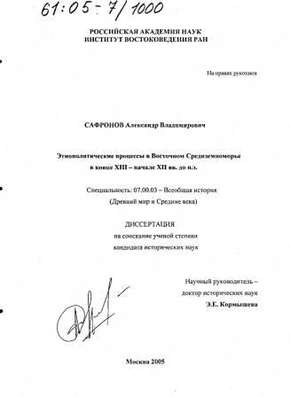 Этнополитические процессы в Восточном Средиземноморье в конце XIII - начале XII вв. до н.э. (2005, Сафронов А.В.)