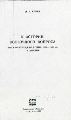 К истории Восточного вопроса. Русско-турецкая война 1806-1812 гг. и Англия. (1978, Гулия Д.Г.)